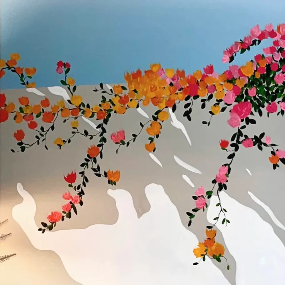 Das Kunstwerk „Blumenranken“ ist eine meisterhafte Darstellung sommerlicher Leichtigkeit. Es fängt den Moment ein, in dem die Mittagssonne die Welt in gleißendes Licht taucht und die Natur ihre filigransten Muster auf die Architektur zeichnet. Ein Bild, das Ruhe ausstrahlt und gleichzeitig durch seine lebendige Farbigkeit begeistert.